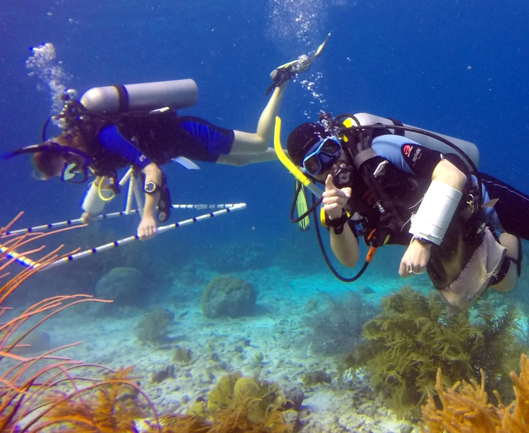 In 2010, unusually warm water temperatures triggered a widespread coral bleaching event that killed 10% of live corals and led to a spike in algal abundance. Divers, managers, and community members were deeply concerned about whether or not Bonaire’s reefs would be able to recover. Unlike in some of the more pristine and less nutrient-rich areas of the Pacific, effective recovery from coral bleaching had yet to be documented in the Caribbean. However, in the years since the 2010 bleaching event, our biennial surveys have shown steady increases in live coral cover and consistent declines in algal abundance, with some interesting corresponding trends in herbivorous fish populations. We are using this long term dataset to better understand the factors that facilitate recovery from coral bleaching in the Caribbean, investigating Bonaire’s reefs as a bright spot among many less promising stories across the Caribbean.